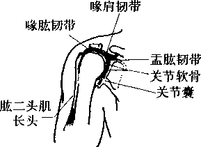加固肩锁关节的韧带有肩锁韧带和喙锁韧带后者又分出斜方韧带和锥状韧带。喙锁韧带非常重要当肩锁韧带断裂时仅能引起关节半脱位而喙锁韧带断裂则引起关节全脱位从而破坏整个上肢的运动(图9-3)。