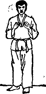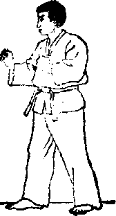 (1)两脚前后开立,左脚在前;两手 握拳做好准备姿势(图95)。