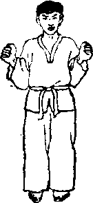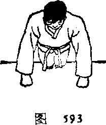 ?身体直立;然后,双腿屈膝下蹲,两拳撑地;接着,两腿 向后蹬伸,身体挺直(图593)。