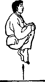 两腿蹬地跳起,上体直立,两腿屈膝 上提收至胸腹间(图595)。落地后立即 再瞪地跳起,重复练习。,