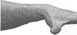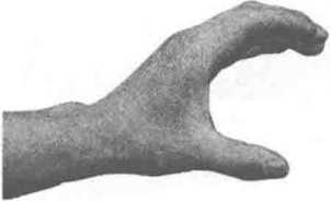动作要领屈腕食指、中指和拇指自然内合指尖捏拢其余两指卷