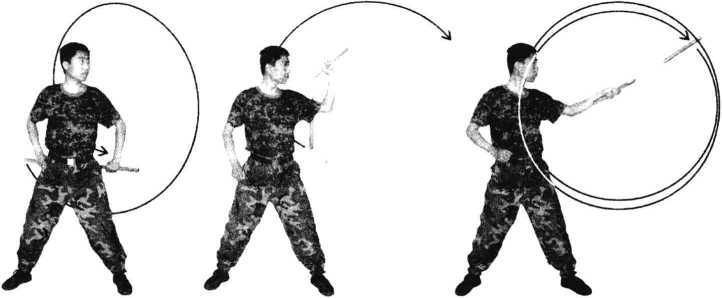 (7) 继续成正运棍,使棍运行回到前上方(图5 -822)。