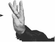 中指和食指并垅挺直,其余三指弯 曲,