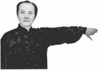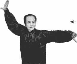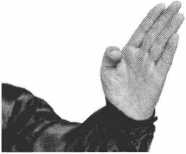一条手臂在身旁架平,肩、肘、 腕一样高,瓦形掌,手指向前。