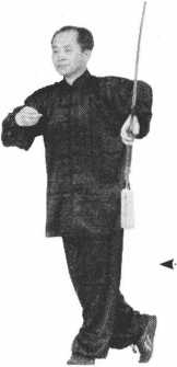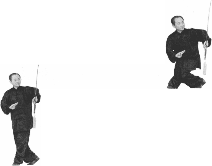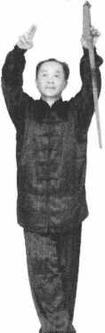 两臂顺时针划圆到上方,剑 尖朝下,两腿交叉立起(图 4-2); .两臂顺时针划圆到上方,剑 尖朝下,两腿交叉立起(图 4-2); .图4—2