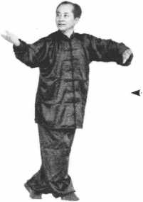 左手的手心朝下,右手的 手心朝上,两手手心斜相 对,在身体的左侧仍成抱 球状(图4—1 );