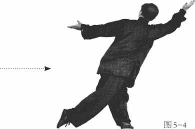左腿下半蹲,右腿伸向3 号位成右插步,右手伸向 7号位的斜上方,左手向3 号位平伸(图5—4)。