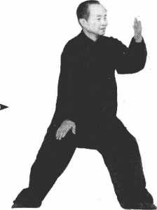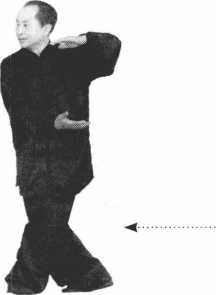 右脚起步,向右后三步走一个 小圈,走到面对8号位成左踏 步,腰略往右拧(图10-2); .....
