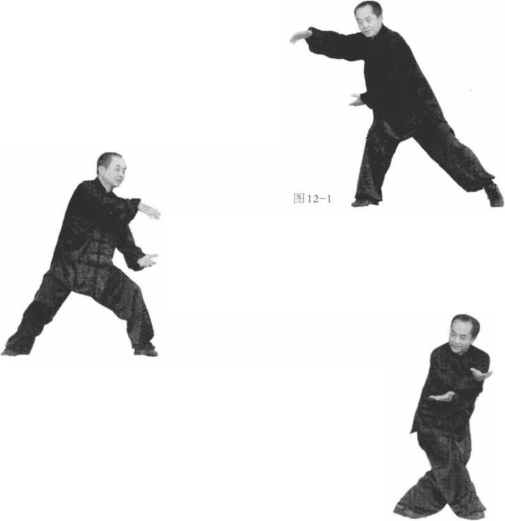 上身略向右转,左脚上到左旁用 脚尖点地(图12-1);