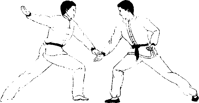 第五十三动:乙、推拿击头,甲、撩掌格挡