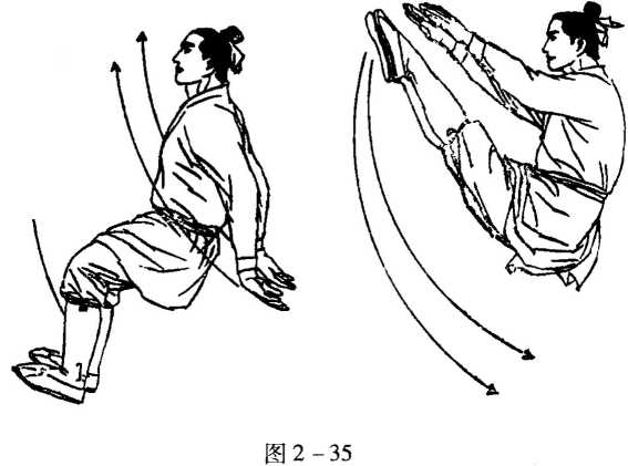 中华武术絶学图2待到向前飞开脚,还须用掌拍其背。双飞脚须并步立,且教身体向前屈。 佐之两臂朝后甩,飞起双脚腾空启。一启双脚人悬空,两掌各自拍脚背。 左右双响同时起,术语称作燕双飞。腿基功中华武术絶学图 2 -36第二旋风脚精图秘说之三十六中华武术絶学图 2 -36旋风脚须开步蹲,跟着则把一腿起。 起腿之后再震脚,助其身子旋空转。 空中转体刮右脚,以手拍脚发响声。 等到拧扭完毕时,腰际一动则收式。5/5/