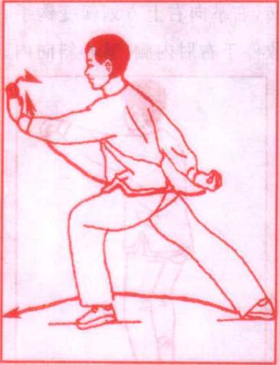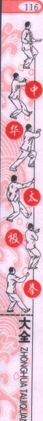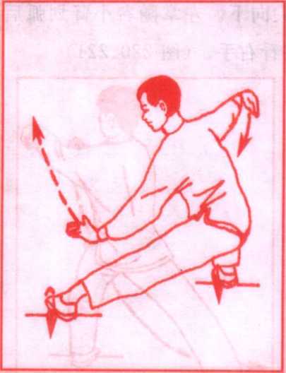 说明:初学者和老年人量力而行,可作半仆步。注意上体不 要过于弯腰、前俯。