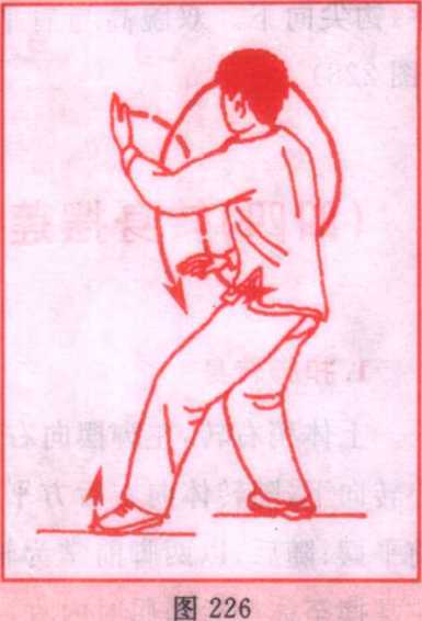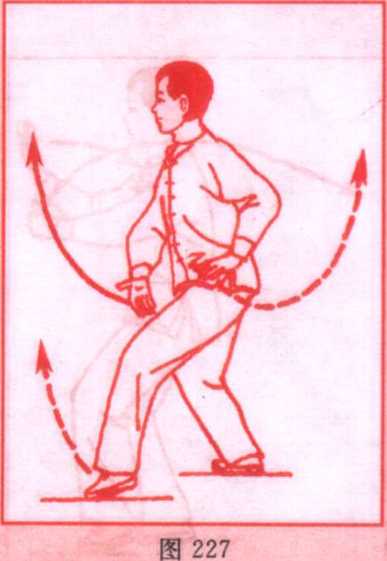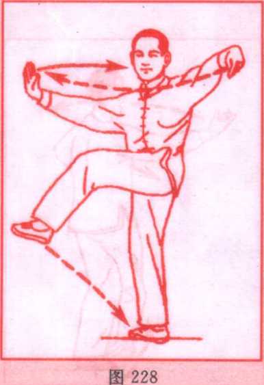 手,钩尖向下。双腕高与肩平。上体随势左转。眼看左前方。 (图 228)