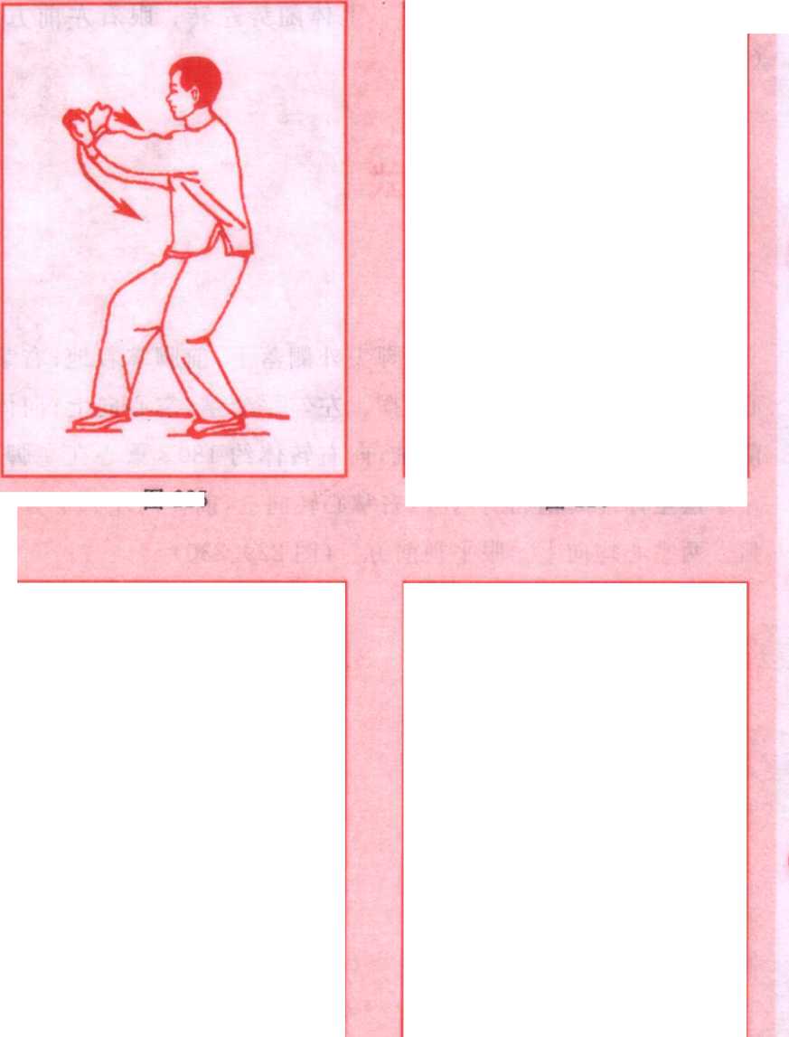 图223图2232.上步架拳2.上步架拳图224图224右脚向前上一步,脚前掌着地。右钩手变拳向面前划弧上 举,拳心向外。左掌变拳内收架于右拳之内,拳心向内。两腕相 交成斜十字形,腕与肩平。眼先看左掌,后看右拳。(图225)