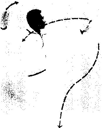 (2) 落脚穿掌时,右脚应先落后上。分手合抱时,两手 划立圆,并与转腰相配合。分手分脚时,两手在头前先翻后 分,柔缓连贯。