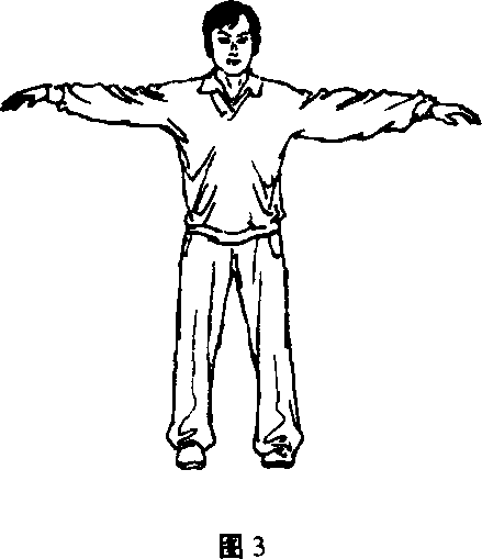 (2) 初练时,呼吸可任其自然,逐步做到配合手的分举