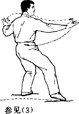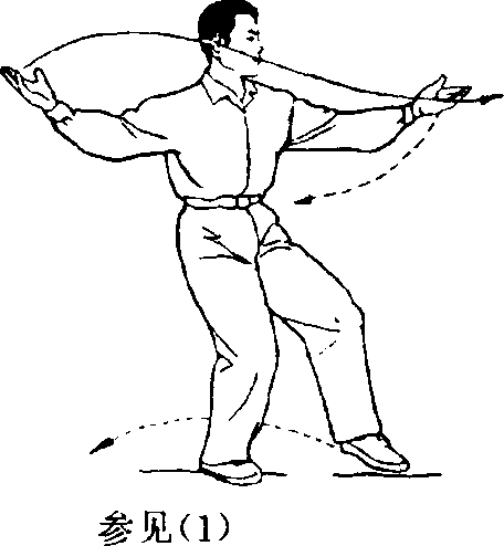 ②提脚举臂过程中,右臂(或左臂)随身体转动向下向右后(或左 后)划弧缓缓上举,不要屈肘挟臂。