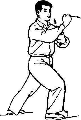 【要 点】 方向为东南。步型成右弓步,两也不要歪拧、交错, 其他参考左脚身捶