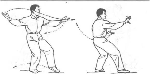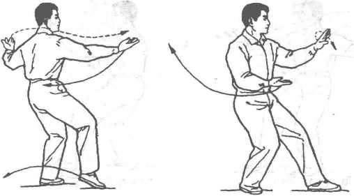 上体右转,右拳变 掌,掌心向上,由前经右 胯侧向后划弧平举,肘 部微屈;随之左臂外旋, 掌心翻向上,左脚轻轻 提起。眼随体转先向右 看,再转向前看左掌。上体右转,右拳变 掌,掌心向上,由前经右 胯侧向后划弧平举,肘 部微屈;随之左臂外旋, 掌心翻向上,左脚轻轻 提起。眼随体转先向右 看,再转向前看左掌。