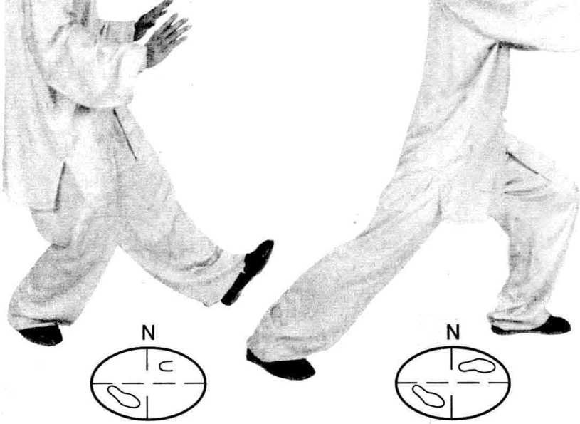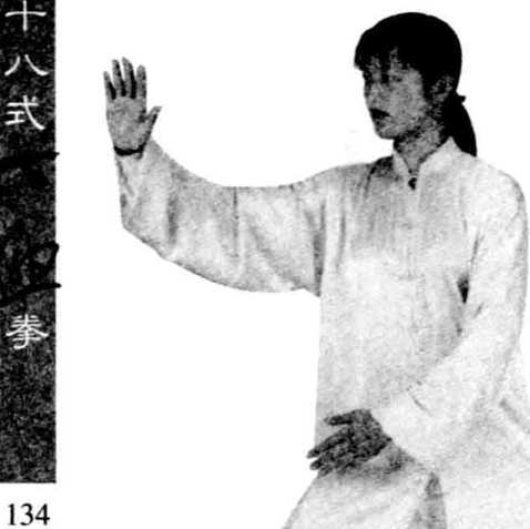 右脚跟进半步,脚前掌 着地;同时两拳变掌,掌心 斜向上。眼向前平视。重心后移,右脚落实,左 脚提起前上半步,左腿屈膝 成左弓步 两掌慢慢分开收 至胸前(与两肩同宽),同时 两前臂边收边内旋,手心翻 转,两掌下落经腹前再向前 按出,掌心向前,腕高与肩 平。眼向前看。【要点】(1)两掌后收时,要边收边分边翻转,并以两肘牵引,不要 肘部不动,前臂扬起向后卷收。(2)重心移动要虚实清楚,按掌 和弓腿要协调一致,同时到达终点。匹匹第33式左云手匹匹
