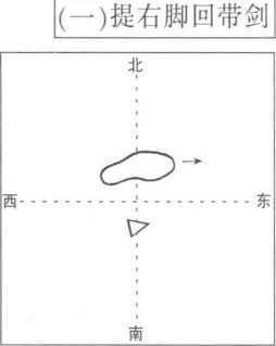 攻防用意:设对方向我右腰刺来一剑,我即移重心提步回带剑以化 解之。