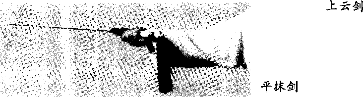 云剑平剑,在头前上方 平圆绕环为云。