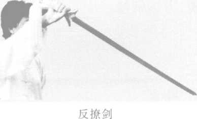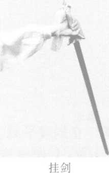 挂剑立剑,剑尖由前向下,向同侧或另 一侧后方贴身挂出,力达剑身前部。