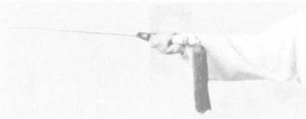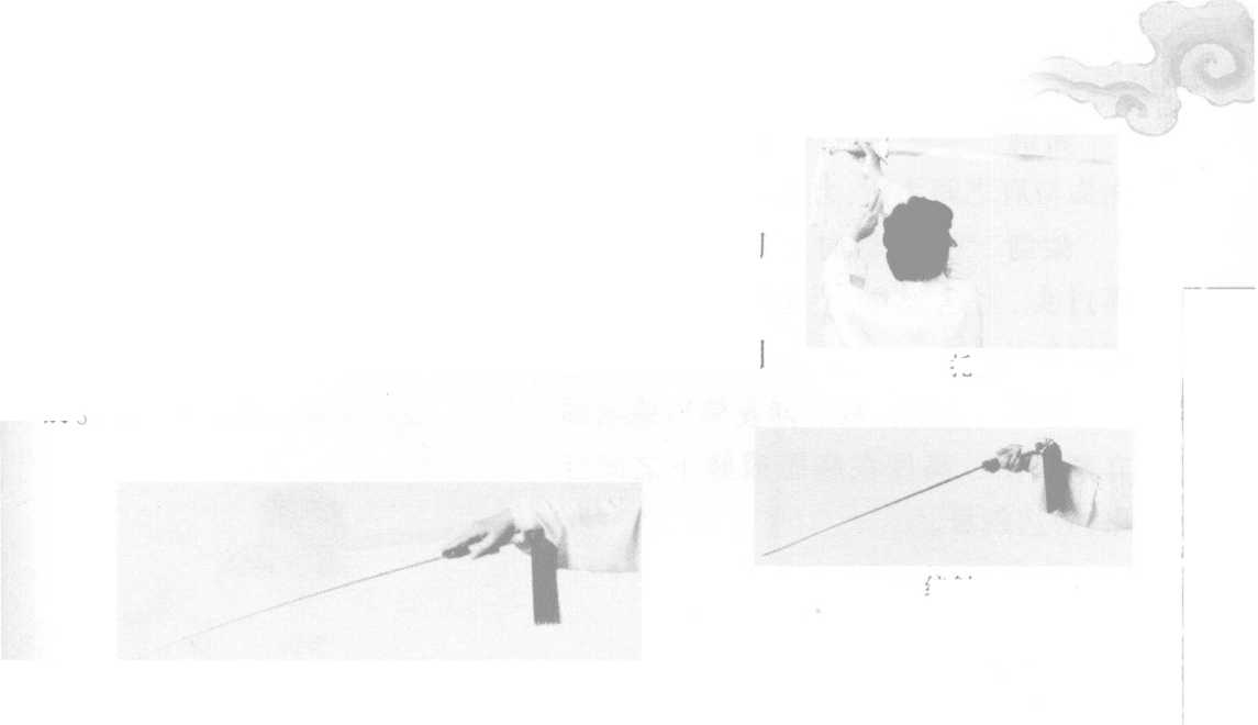 点剑 立剑,提腕,使剑尖由上向前下点 击,臂自然伸直,力达剑尖下峰。