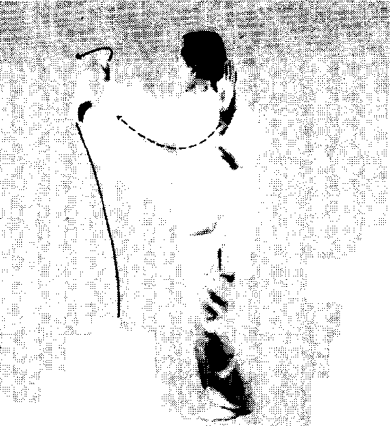重心前移至左腿,上体左转,成左弓步。右掌从左前臂上方 穿出,向上向右划弧展开,掌心斜向下,腕与肩同高;左掌向下向 左划弧至腰侧。目视前方。