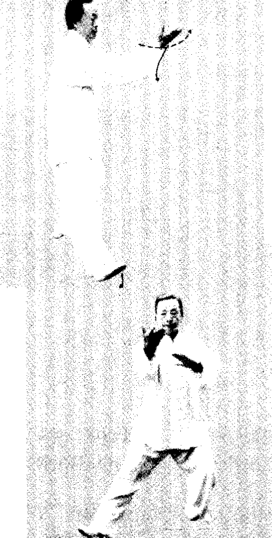 (五)右弓步前挤重心前移,成右弓步。两臂同时向前挤出,两臂撑圆。左掌 指贴于右腕内侧,掌心向外,指尖斜向上;右掌心向内,指尖向 左,高与肩平。目视右掌前方。弓步形成与两臂前挤要同时到位。注意重心缓缓前移,左 腿由屈缓缓蹬直。松腰沉跨。两臂前挤撑圆,不扬肘,不前颌。右弓步前挤为呼气。攻防接上动,当对方手腕部被我拿住时,我趁势弓步前挤, 使彼跌出。(摄自东侧)八、捋挤势(六)微后坐翘脚北(摄自东侧)