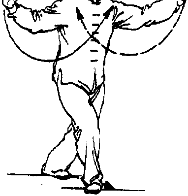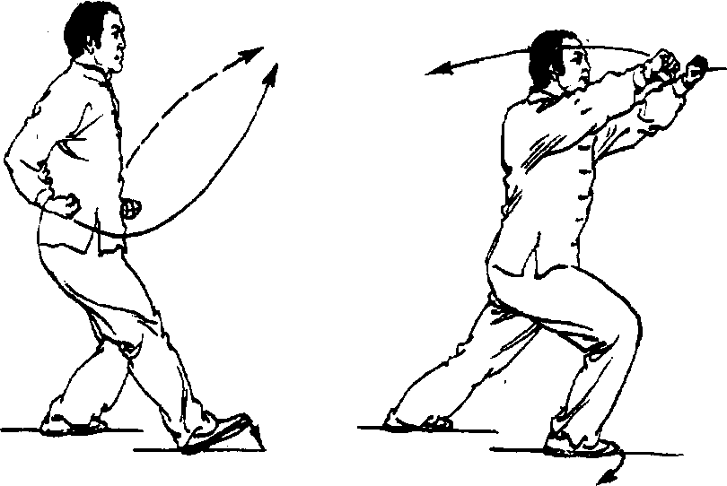 ① 右腿屈膝,小腿回收,脚尖下垂;两臂屈肘 外旋,在胸前相合,两掌经面前划弧平行下落于右 膝上方,掌心翻向上;目视前方(图22①)。图22②图22②图22③图22③图22②图22②图22③图22③② 右脚向前落步,脚跟着地;两掌分落于腰 侧,逐渐握拳,拳心向上;目视前方(图22 ②)。③ 重心前移,成右弓步;两拳同时经两侧向 前上方划弧贯打,高与耳齐,相距同头宽,拳眼 斜向下,两臂半屈成钳形;目视前方(图22 ③)。图23①图23①图23②图23②图23①图23①图23②图23②