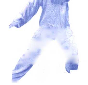⑧上体继续左转,右脚收于左脚内侧落地,两脚平行向前, 相距10?20厘米;两掌云至身体左侧逐渐翻转,左掌心转向外, 右掌云至左肘内侧,掌心转向内;目视左掌方向。(图165、 166、 167)