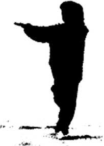 (用意〕两手展分是引动对方注意,然后以脚蹬击或飞