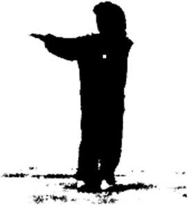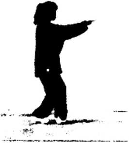 左脚蹬出 后.小腿收屈, 与右脚距约10 厘米落地成并 立步,同时左掌 外翻仰掌上托, 右手小臂内屈, 右掌掌心朝前. 指尖向左,摆于 胸前,眼看左方 (图 166、167)。