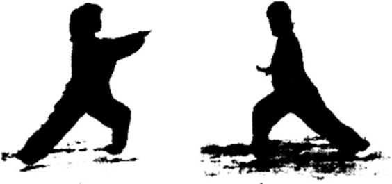 南方向。右掌略 转向斜下,眼看右前方(图169、170)。