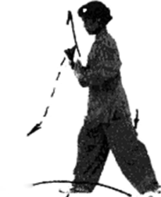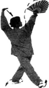 1. 虚步展扇 定式面向 东北。接上式 左腿支承重 心,左脚稍向 外撇,右脚向 左前方(东 北)出步,脚 掌着地成右虚 步,腰微右 转,上休略后仰,