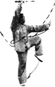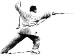后划-圆弧拖回至右胯外侧,挑剑竖 立左手剑指在剑划至正东时合于右