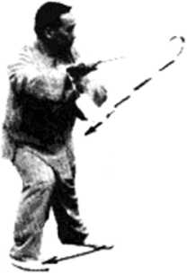 〔要点)注意身剑合?,腰左转与挂剑配合,完成右弓 步及剑指上架与劈剑配合。总体动作都主宰于腰;而局部 动作则挂剑用力在「腕,力点在剑尖及其后的一小段剑刃。 劈剑用力在臂,着力点在剑刃之中段。