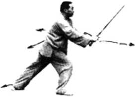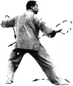 落;剑指仍附F右腕。眼看剑尖(图 17)。