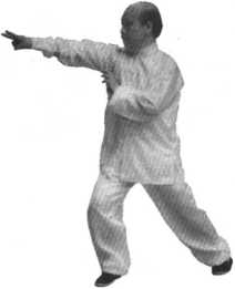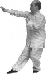 三戏珠动作要快捷、有力,力达指 尖。借上步重心前移冲力,注意不能失