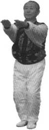 两脚并垅,上身中正,双肩内扣,头正颈直,含 胸拔背,舌舔上颂,双手自然下垂置于身体两侧,