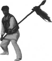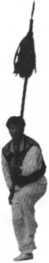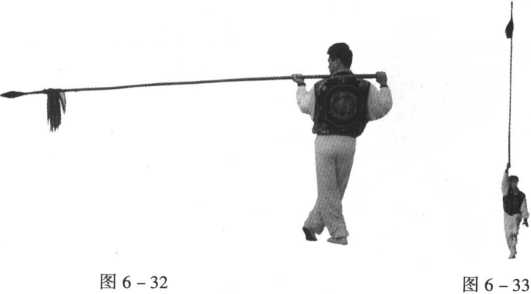 手握枪把抬过头顶,左 手握着枪杆托枪,上身略向后仰,目视枪尖(图6-30)。