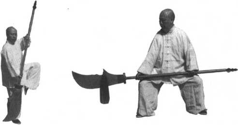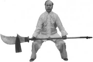 外,刀柄贴靠在身体左侧胸、肋之间,目视大刀(同图116)。