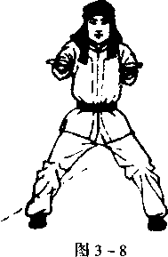 下肢不动,两掌由胸两侧平直用力前插,掌心向上,目视前 方(图3-8 )。