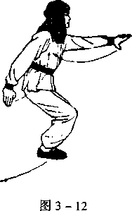 國术n下蹲成左虚步,身稍前倾,重心移至右腿之上,目视左掌(图3 -