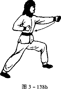 ,拳眼向上,目视左拳(图3-138b)。