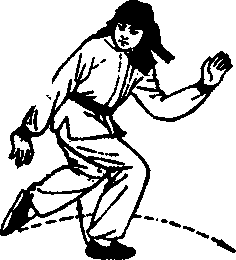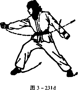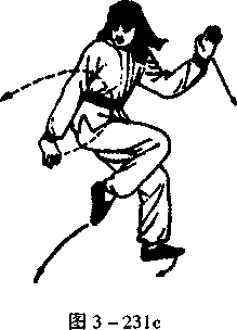 上身不动,左脚向前跑一步, 右脚提起(图3-231c)。