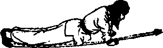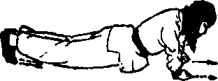 上动不停,身体向后翻,两腿向后蹬;两手用力撑地,使身体 俯卧,两手和两脚尖撑地,胸、腹不得贴地,目视前下方(图3 - 244b)〇