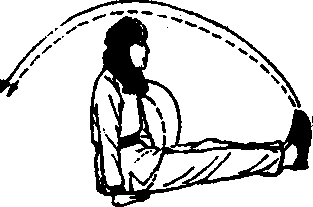 图 3 - 246前拱起;同时,两脚由后经 两臂中间向前蹬出,成坐 势,但臀部不准坐地,脚尖 勾起,目视前方(图3- 246)。