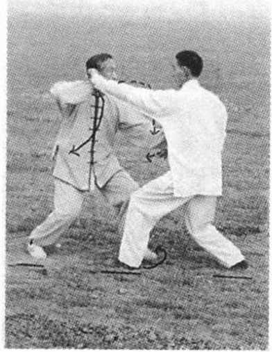 乙:撤步左捋掌,上步 右贯耳捶
